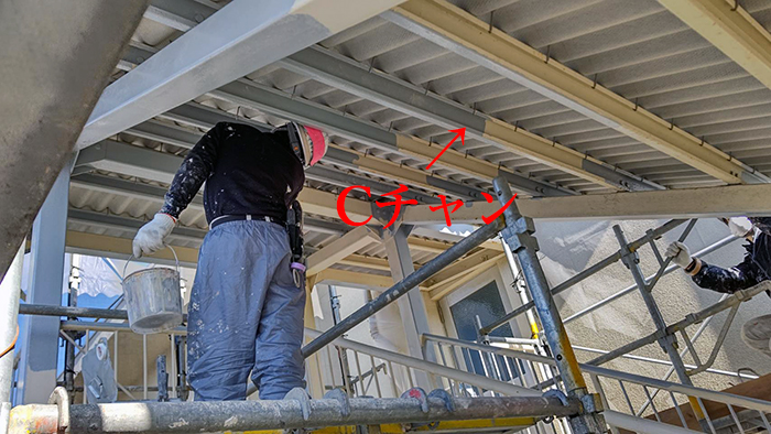 画像を見てい頂ければ良くわかりますが、リップ溝型鋼(Cチャン)は塗りにくい箇所でもあり、